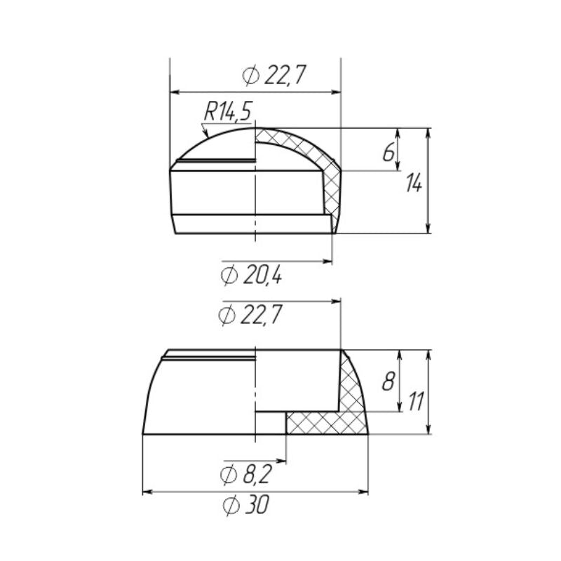 - Base: Ø30 mm × height 11 mm (inner Ø22.7 mm × depth 8 mm)